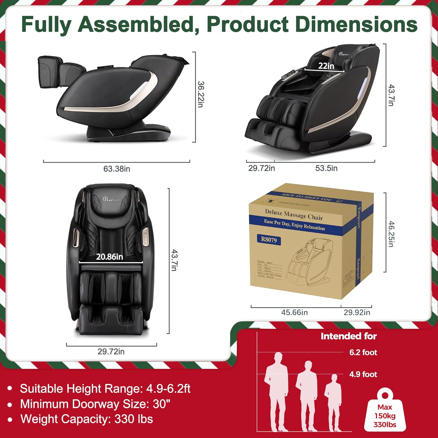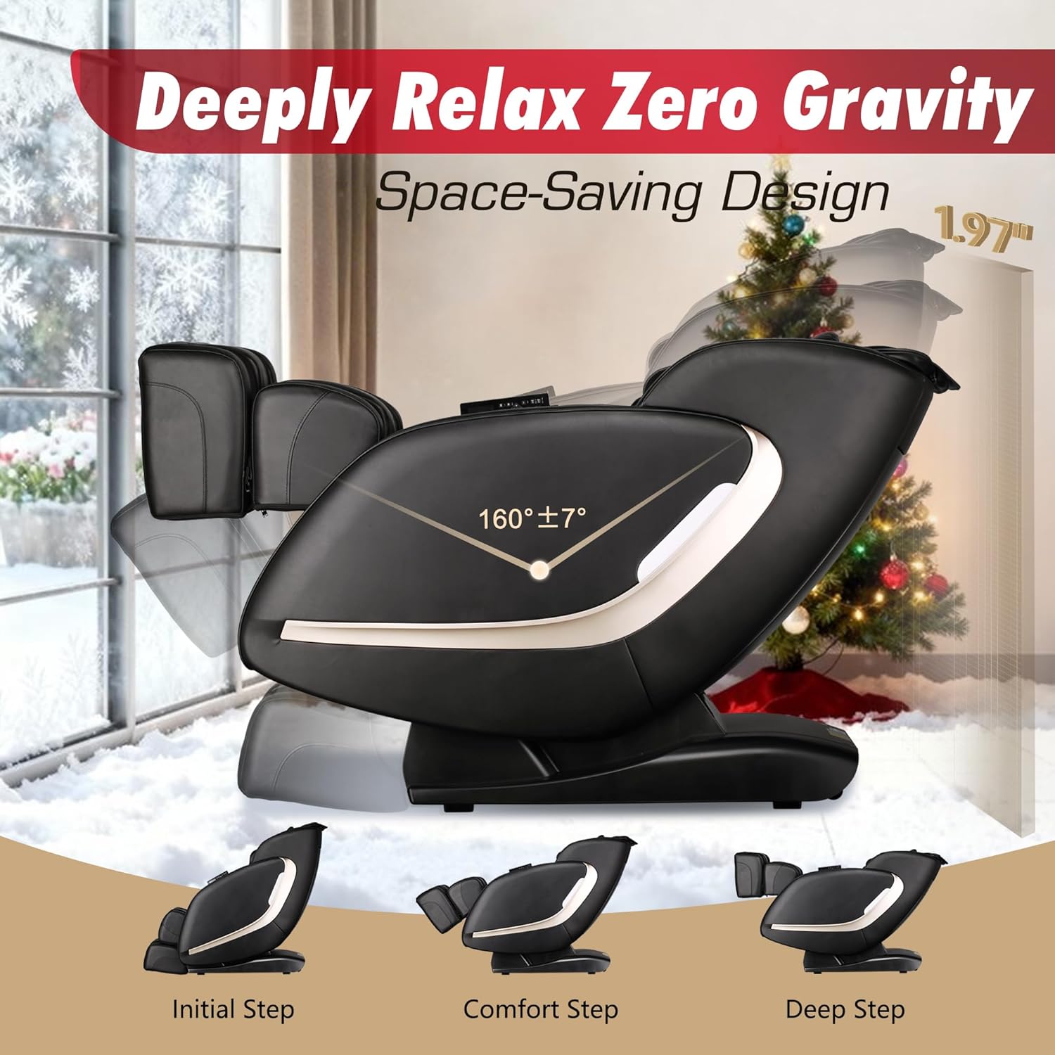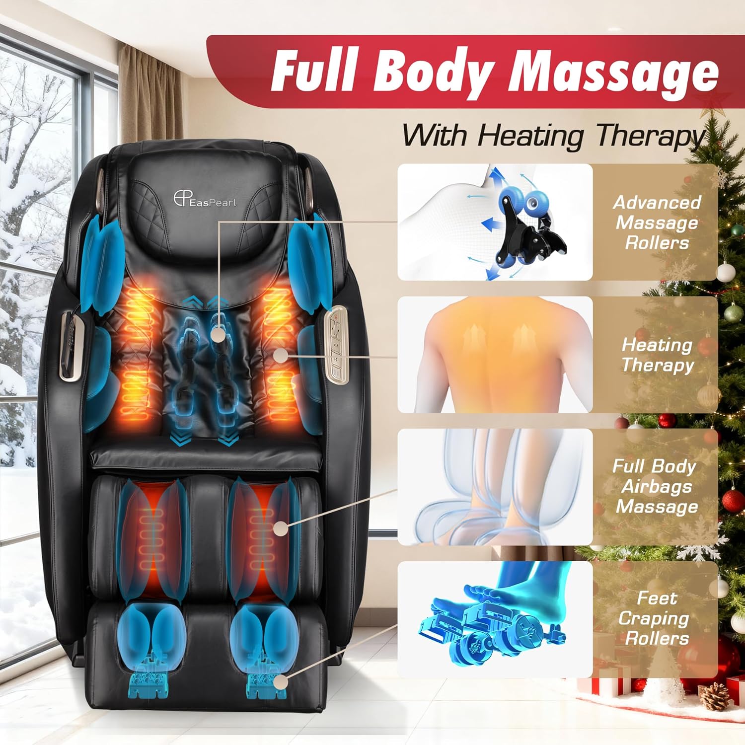 EASPEARL 2026 Massage Chair Full Body,SL-Track,165°Zero Gravity Massage with Full Body Heat,APP Control,Airbags,Bluetooth Speaker,12 Auto Modes,3-Row Foot Rollers,Body Scan(Black)