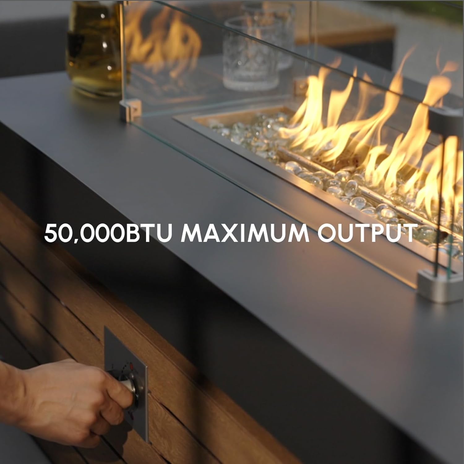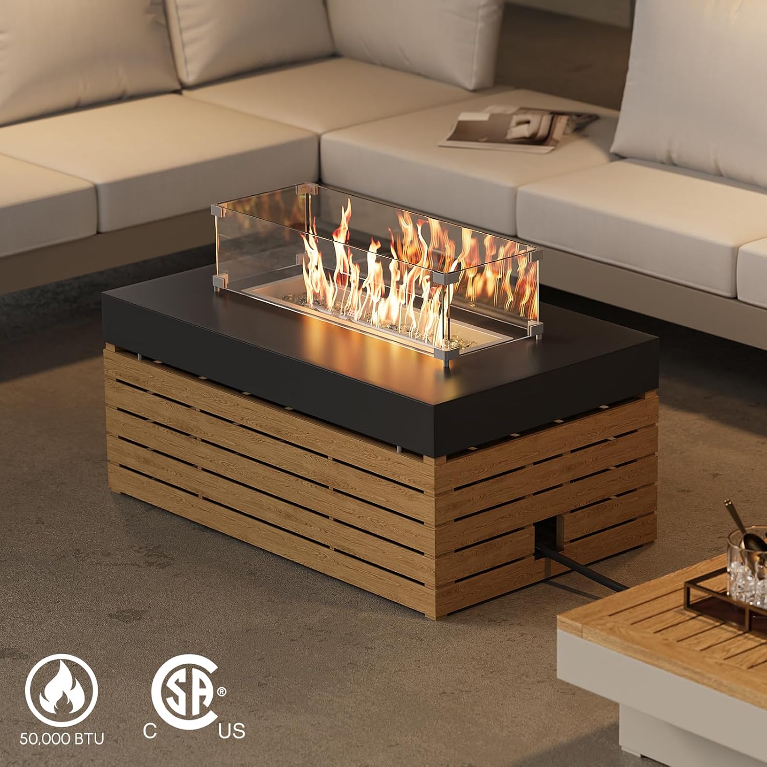 homary Patio Conversation Sets with Fire Pit-Modular Outdoor Sofa Aluminum & Teak Outdoor Sofa Se with Glass Wind Guard Ideal for Patios & Balconies, Light Gray
