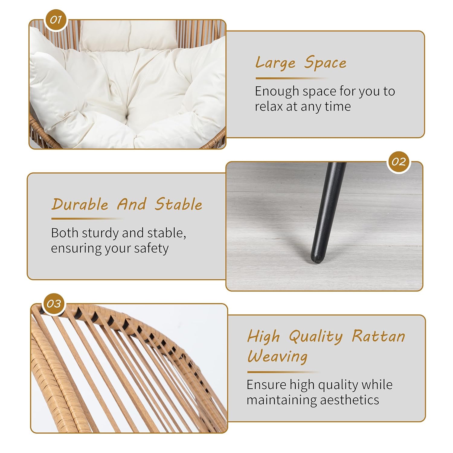 Shintenchi Wicker Egg Chair Outdoor Rattan Patio Chair with Cushion,Oversized Patio Lounge Chairs with Cushion Egg Basket Chair, Egg Seat for Indoor Living Room Bedroom Outside…