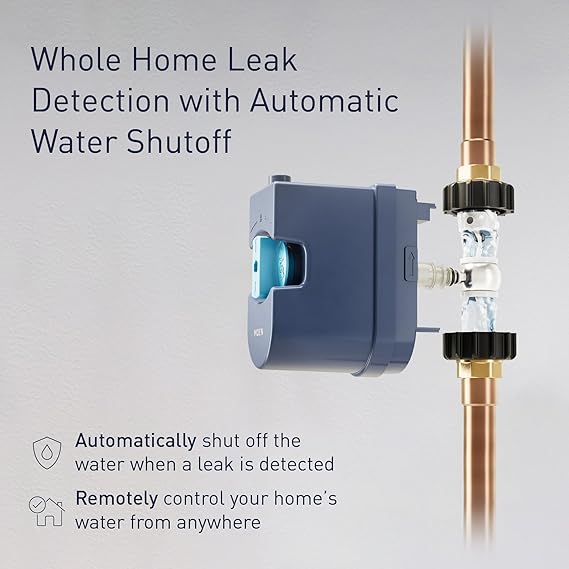 - AUTOMATIC SHUTOFF: Learns your home’s water usage patterns to identify abnormalities like running water or small leaks and will automatically turn off water to prevent damage