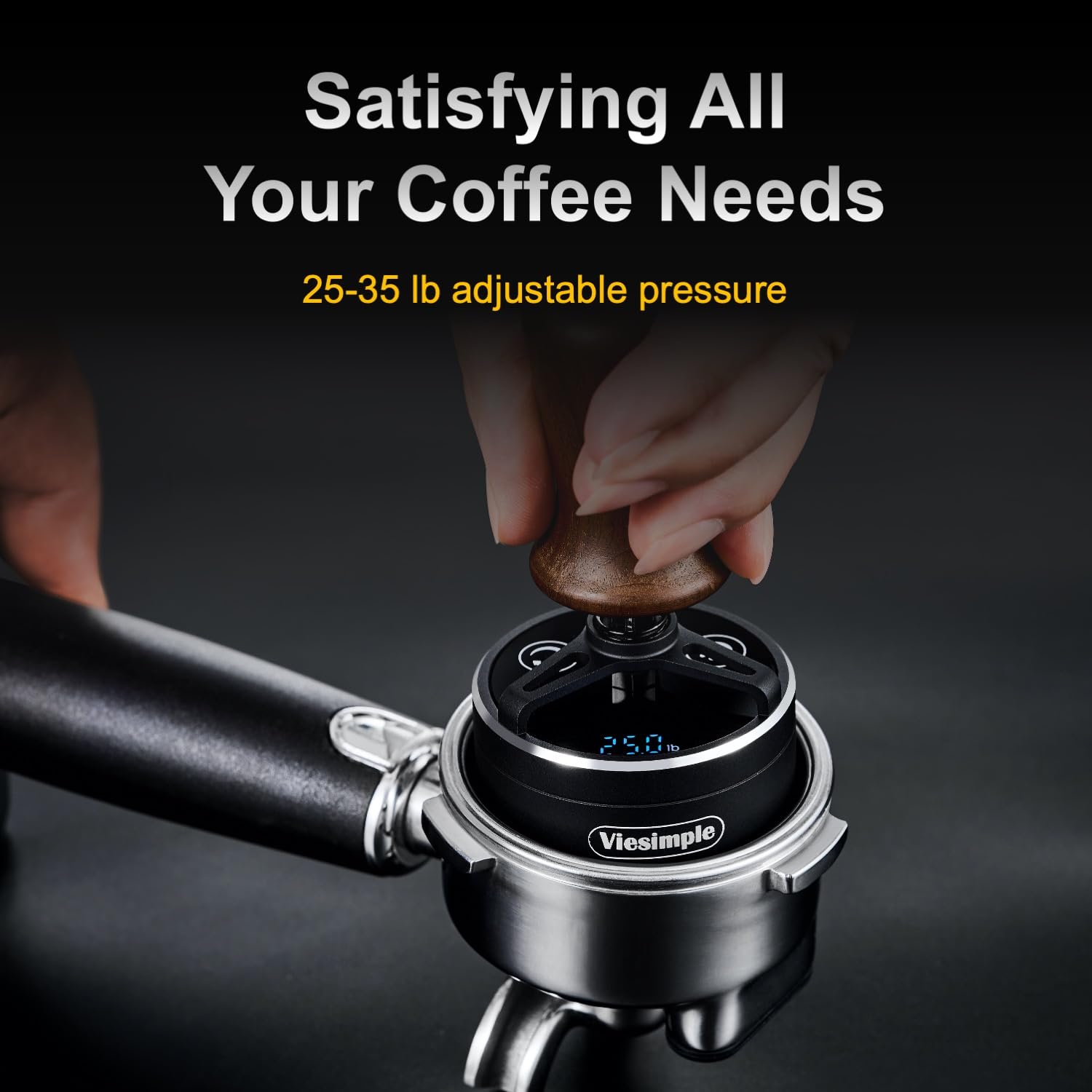 X5 Pro Smart Espresso Tamper – 53mm, 25-35lb Adjustable Pressure for Home Baristas & Cafes, Rechargeable with Anti-Skew Design, 1000+ Tamps per Charge, Walnut Handle